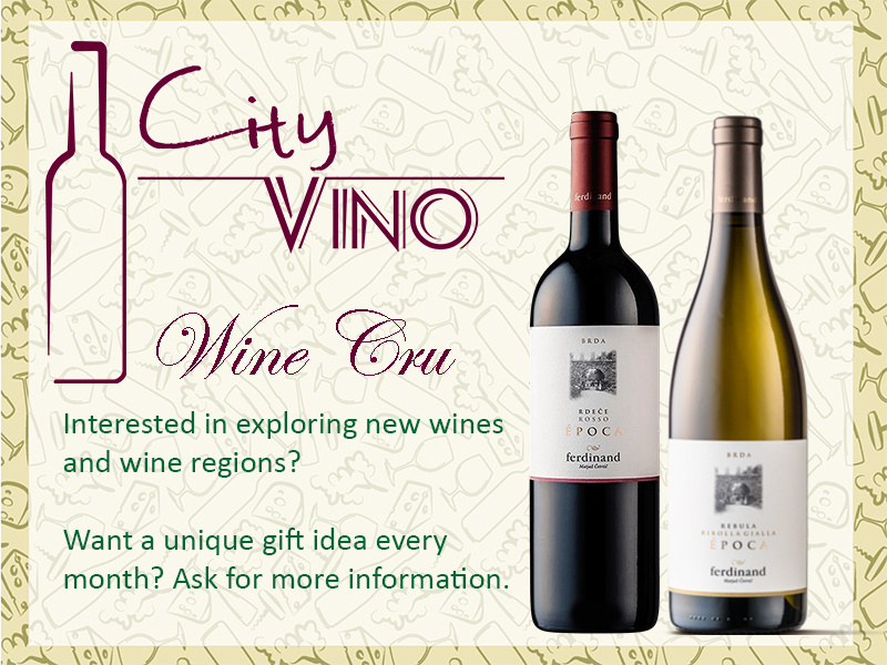 Interested in exploring new wines and wine regions? Looking for new ideas for food and wine pairings? Want to impress your friends with your wine knowledge? Join the City Vino Wine Cru!