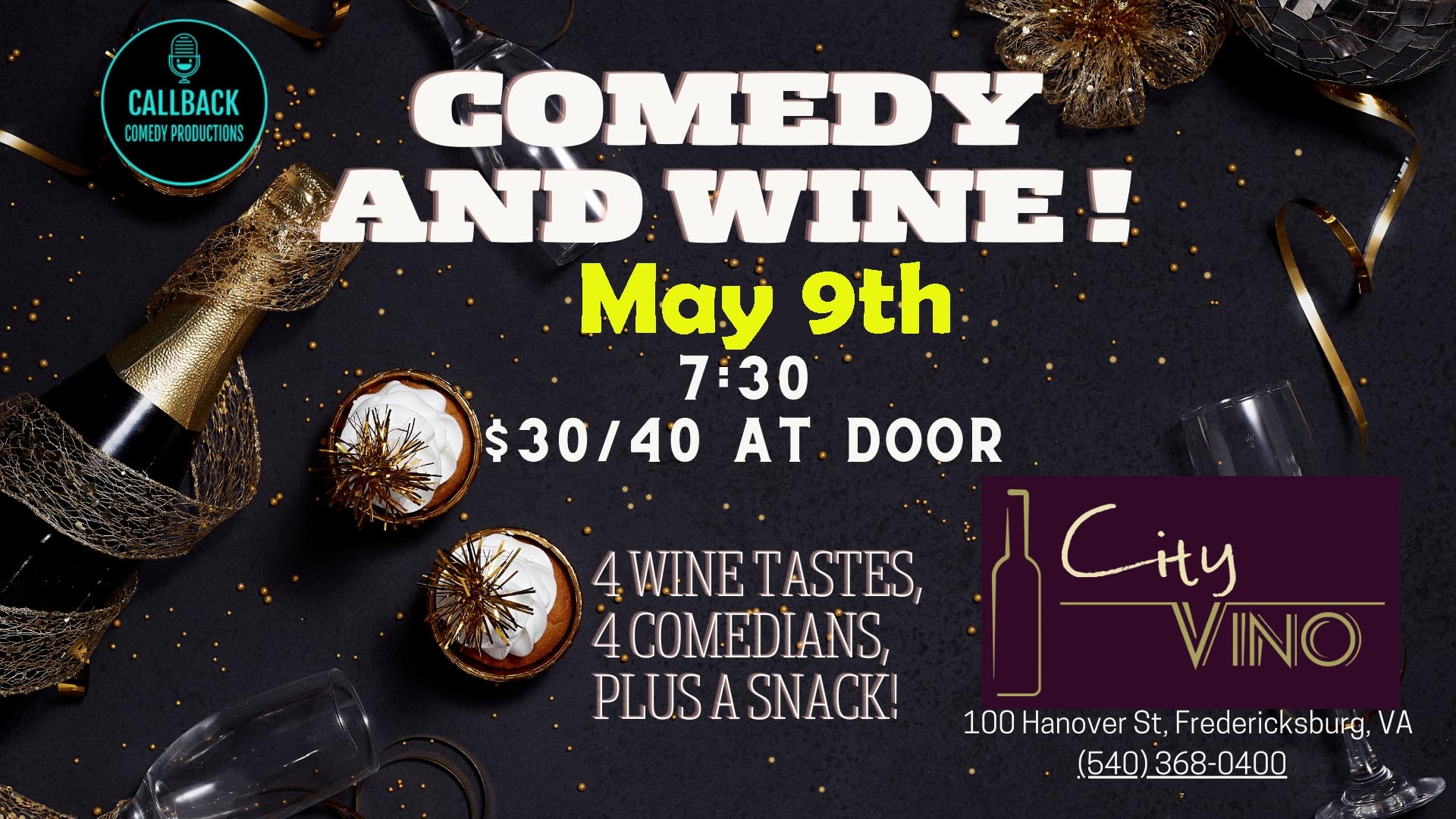 Funny Man and beloved City Vino wine rep, Jon Yeager is coming to City Vino to share jokes and wine. He is bringing with him comics that have played at the DC Improv and have appeared on TV. Can't name drop, you just must come see who it is. Included are four comics paired with four wines and a light snack. By the glass, bottles sales, and other food menu items available for purchase.